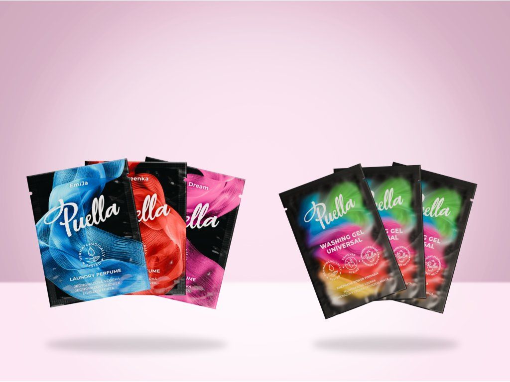 Puella próbakészlet – mosóparfüm minták (3 db) és mosógélek (3 db). A szett 3× mosóparfümöt (EmiJa, Queenka, First Dream) és 3× univerzális mosógélt tartalmaz. Ez egy kiegyensúlyozott kombináció, melynek köszönhetően nemcsak az egyes illatokat, hanem a Puella mosógél hatékonyságát is tesztelheted a gyakorlatban.